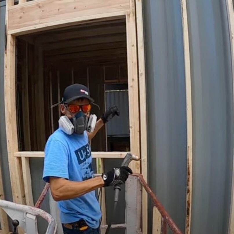 When we decided to spray foam on the outside of our container home people asked us why we decided to exposed the container walls on the inside vs the outside. Our decision was based on Minnesota’s cold climate, and the preferred style we wanted to capture in our new living space. The spray foam will prevent thermal bridging from occurring on the interior of the container home. The result is an energy efficient home that will reduce our utility costs. The other benefit is that the exposed container complements the polished concrete floors for a unique industrial style that suits our style and climate.